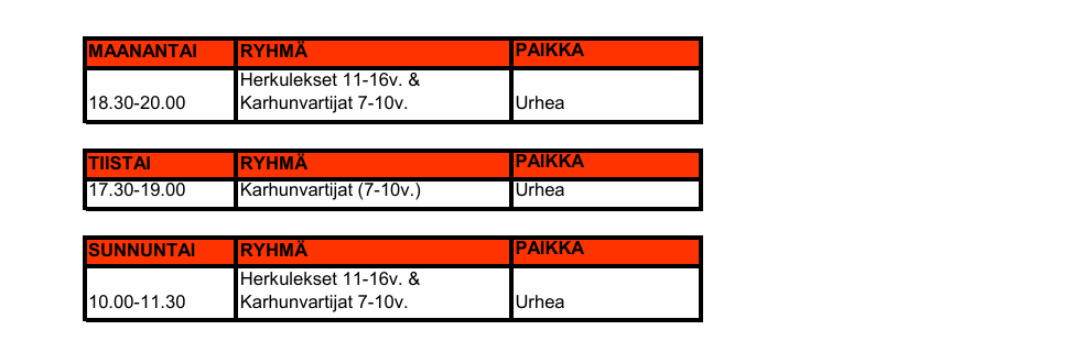 Alla nykyisen toimintavuoden aikataulu. Voit tutustua tarjontaan etukäteen: